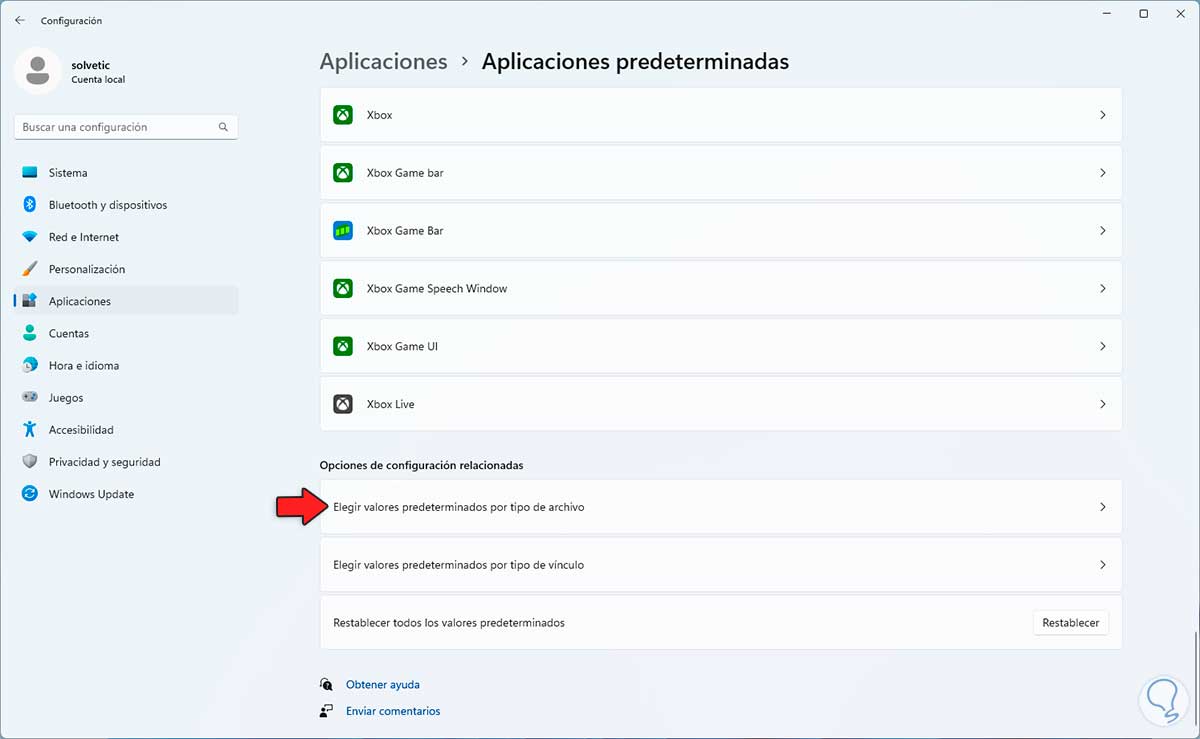 En la parte inferior de la siguiente ventana damos clic en "Elegir valores predeterminados por tipo de archivo":