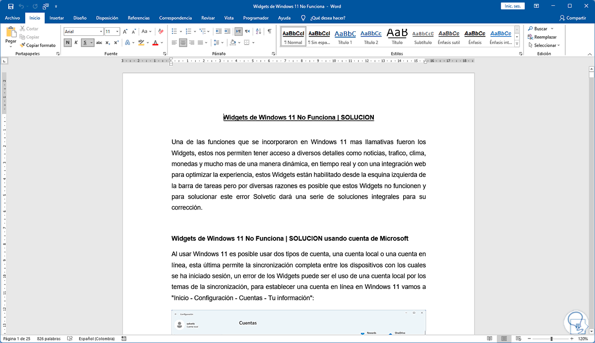 Al dar clic allí retomaremos el estilo tradicional de Word: