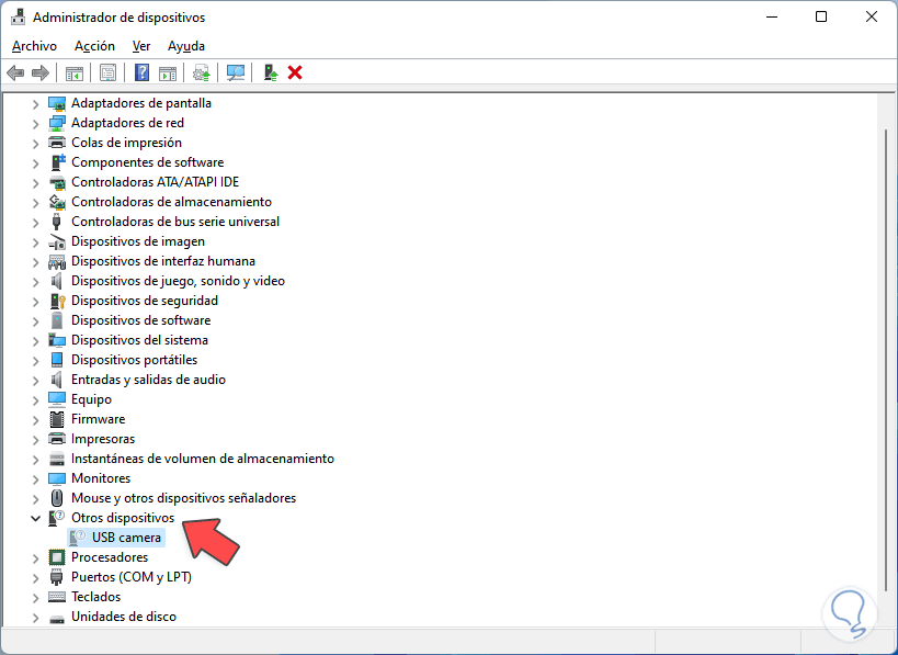 Abrimos el Administrador de dispositivos y ahora el controlador estará en la sección correspondiente a su función: