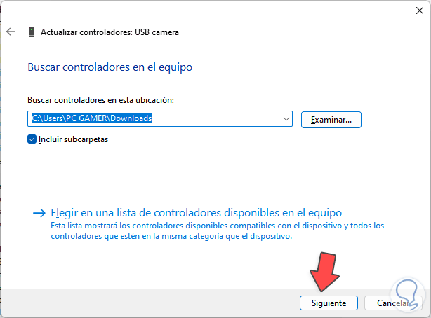 Damos clic en "Buscar controladores en mi equipo" y luego veremos lo siguiente: