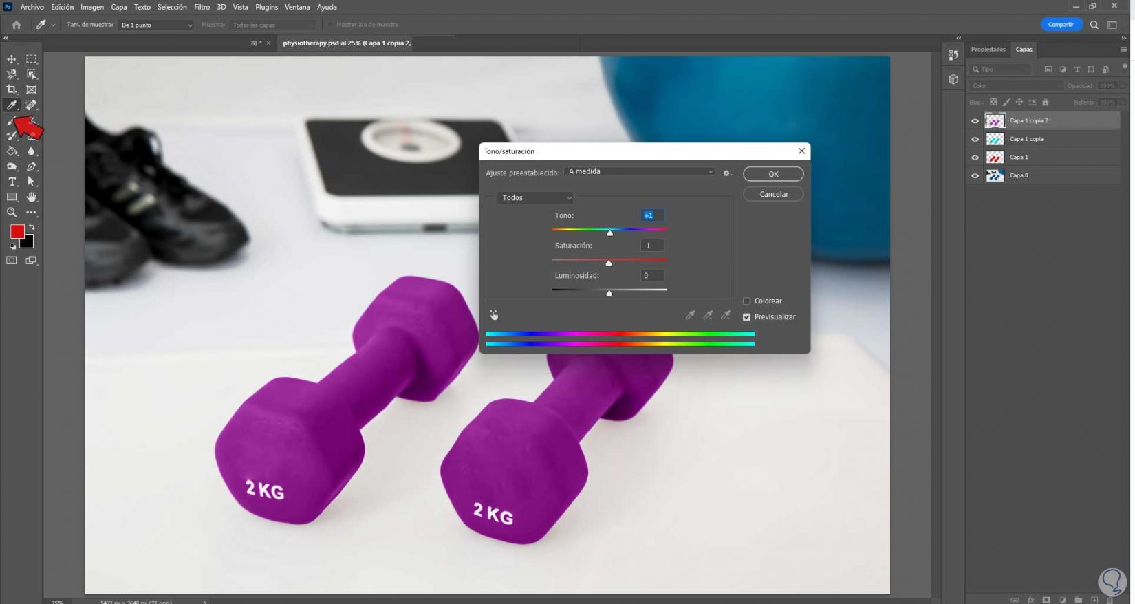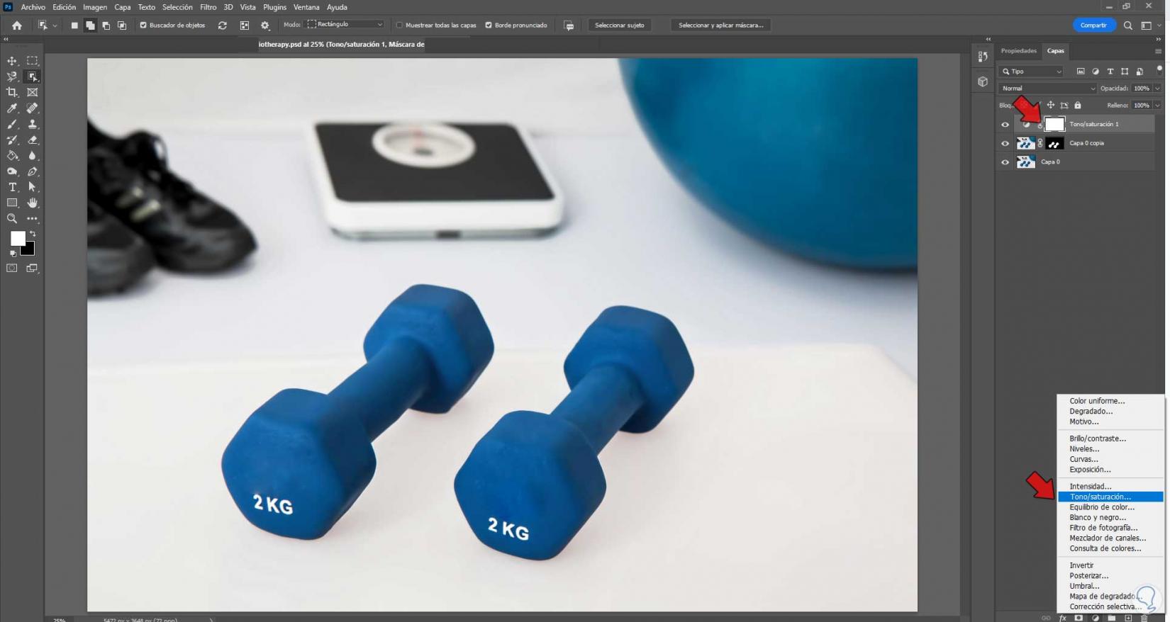 2. Cambiar color de un objeto Photoshop con capa de ajuste