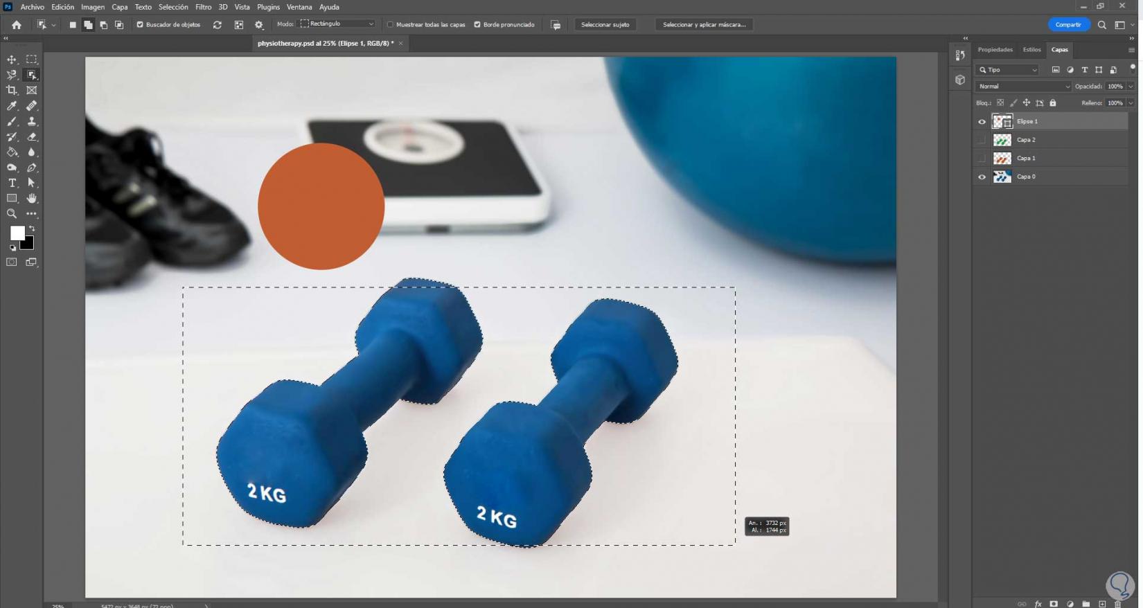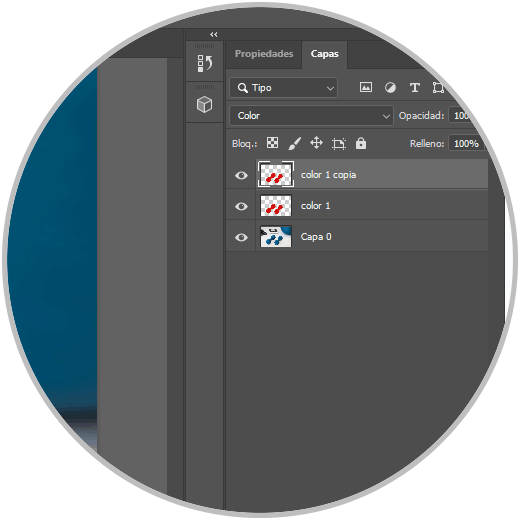 Lo primero que haremos para que sea más sencillo, será crear un círculo con el color de referencia que queremos colocar nuevo.