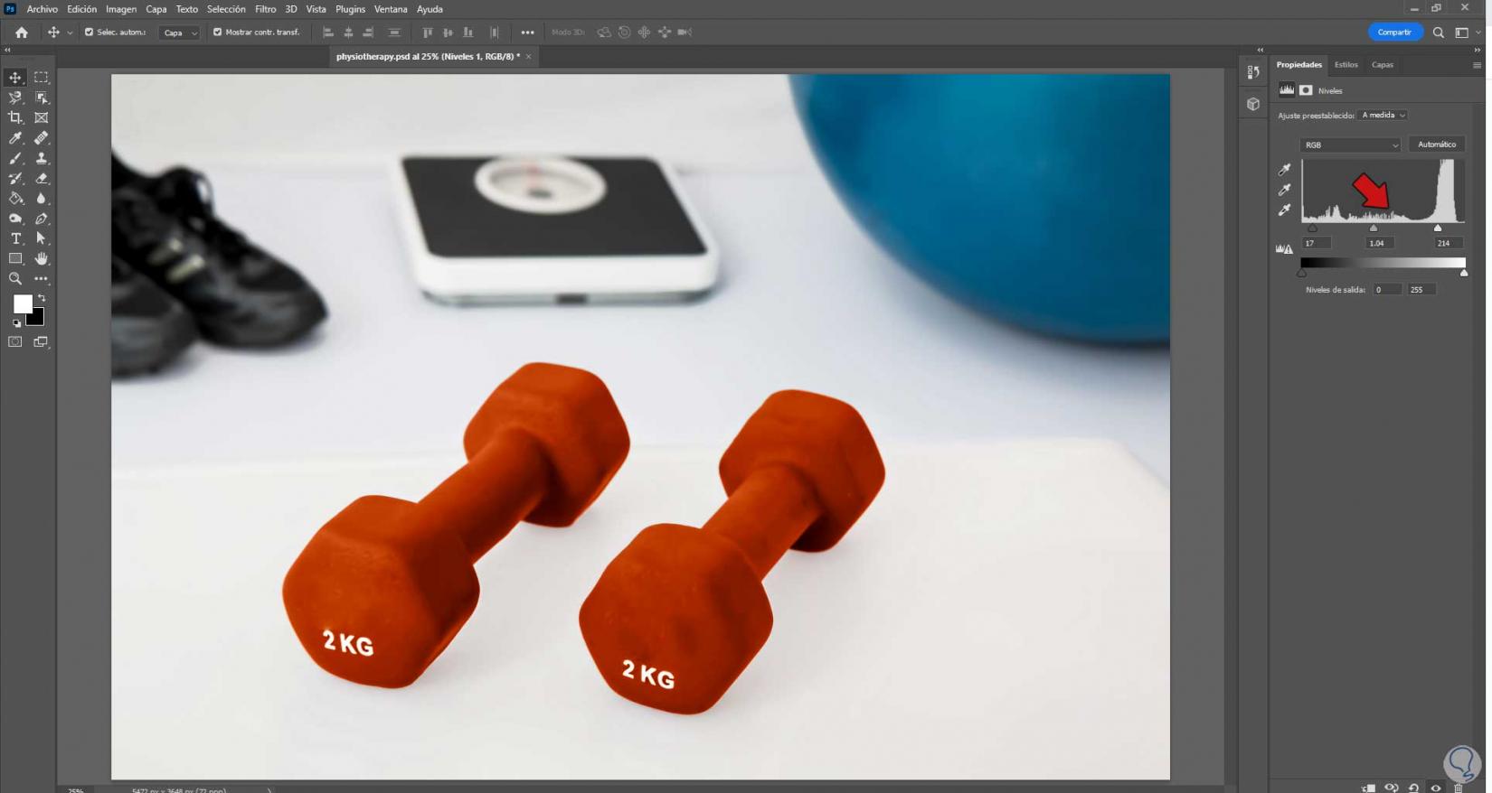 Abrimos el panel de propiedades de Niveles y hacemos los ajustes que vayamos necesitando hasta dar con el resultado que busquemos.