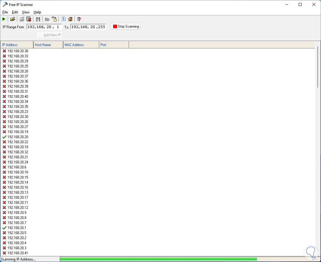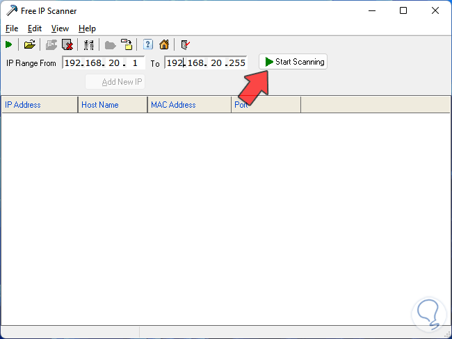 Abrimos la aplicación IP Scanner y por defecto en la parte superior automáticamente se reconoce el rango de IP del equipo: