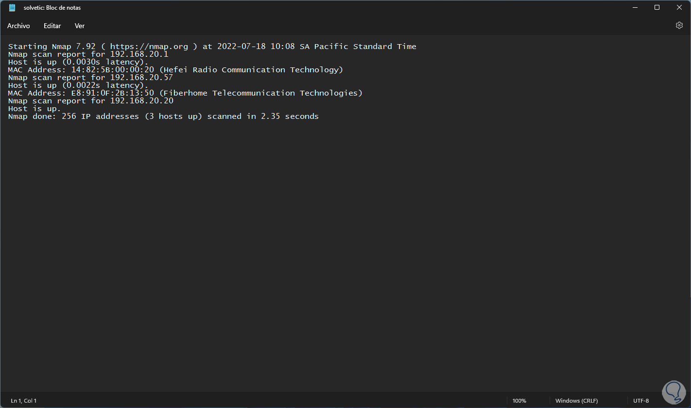 3. Ver Equipos Conectados a mi Red y Ver IP en Uso con Nmap