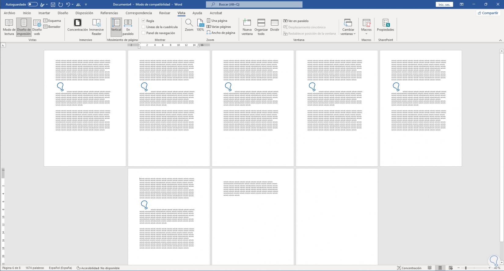 Nuestra página se duplicará automáticamente las veces que lo hayamos configurado que en este caso han sido 5 de la página 1.
