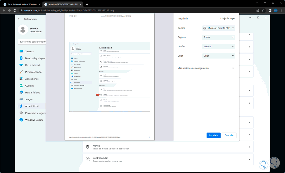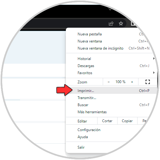 La imagen se abrirá en otra pestaña del navegador, vamos al menú del navegador y luego seleccionamos "Imprimir":