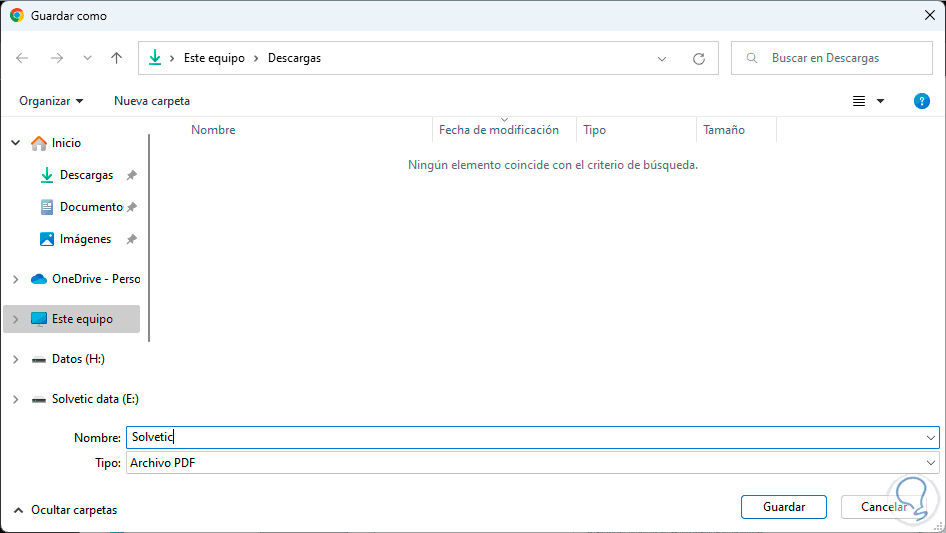 Damos clic en "Guardar" y definimos la ubicación y nombre a usar: