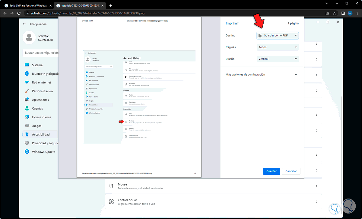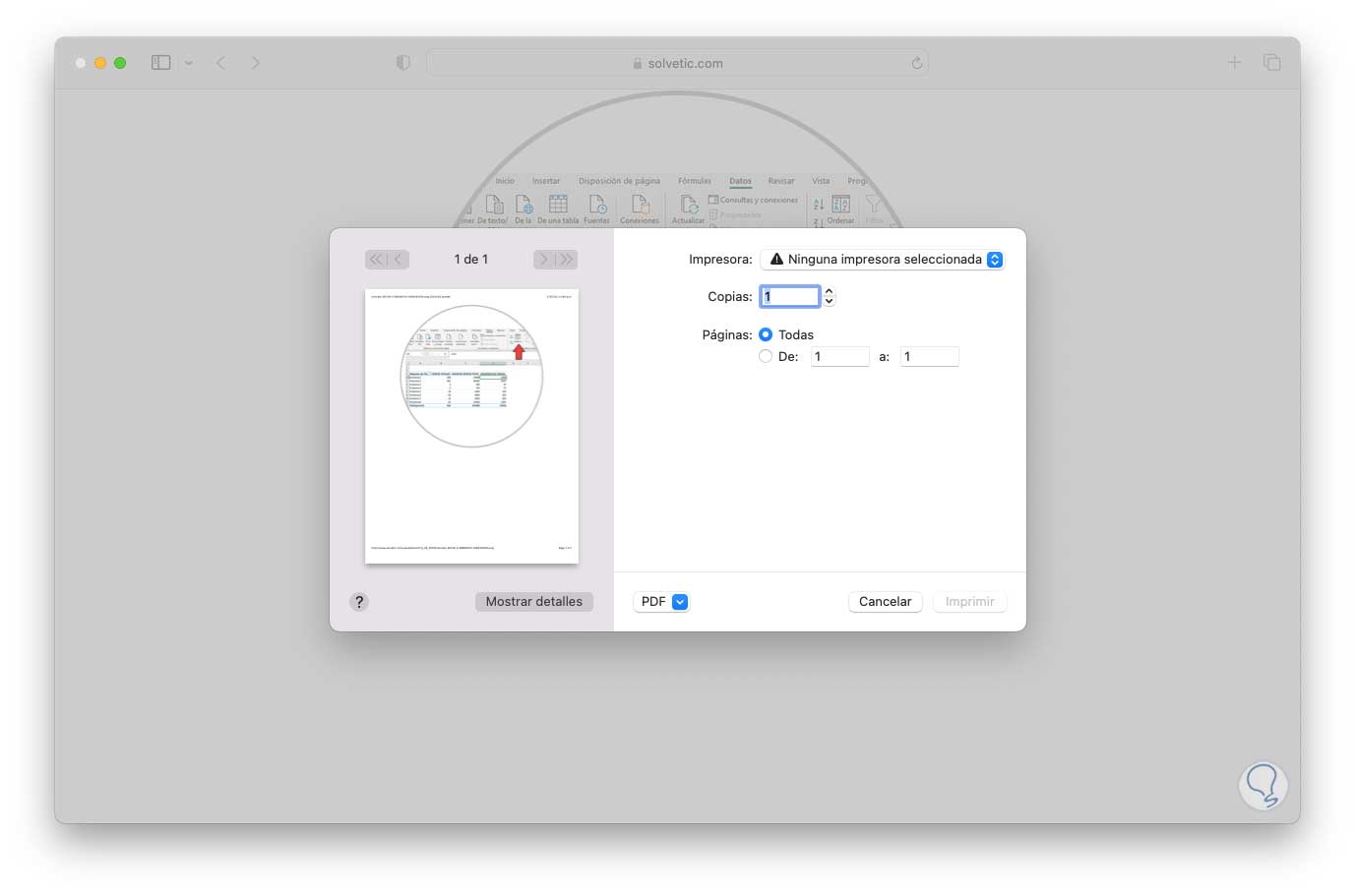 En "Destino" seleccionamos la opción "Guardar como PDF":