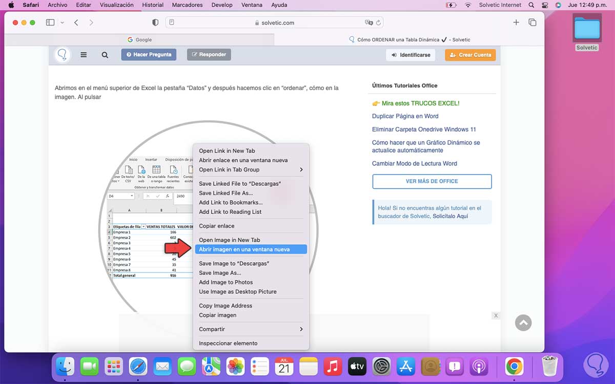 Abrimos Safari o el navegador deseado, damos clic derecho (Ctrl + clic) sobre la imagen y luego seleccionamos "Abrir imagen en una ventana nueva":