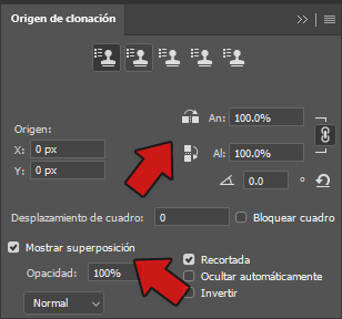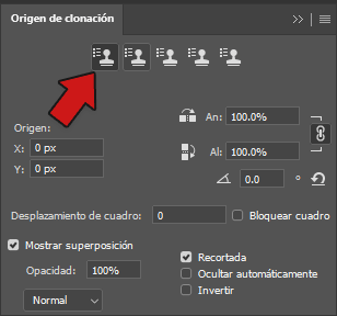 Desde el panel de “Origen de clonación” podemos definir los parámetros a la hora de clonar.