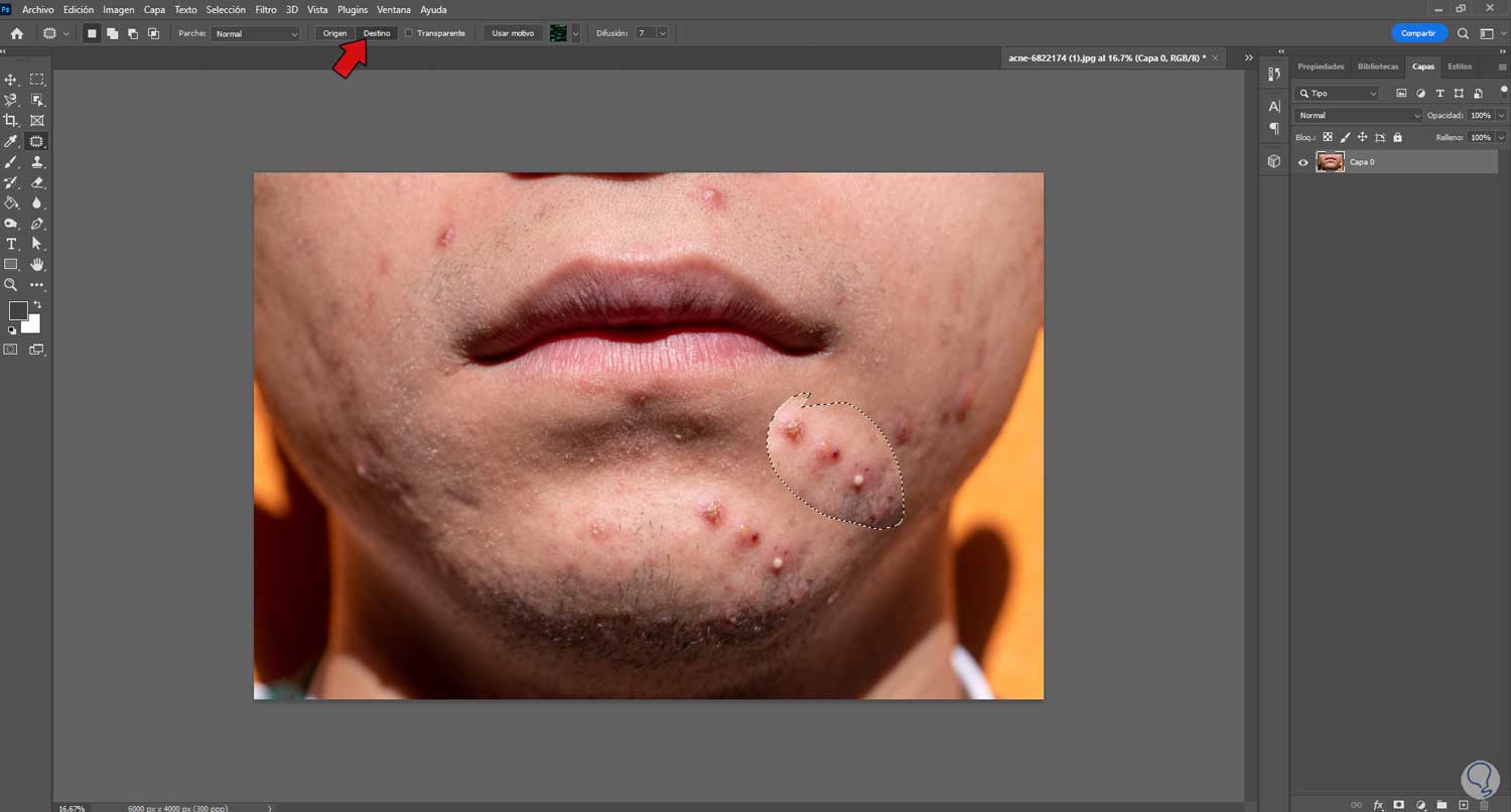 Seleccionaremos la herramienta Parche desde el panel de herramientas.