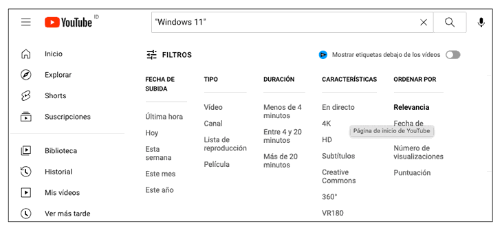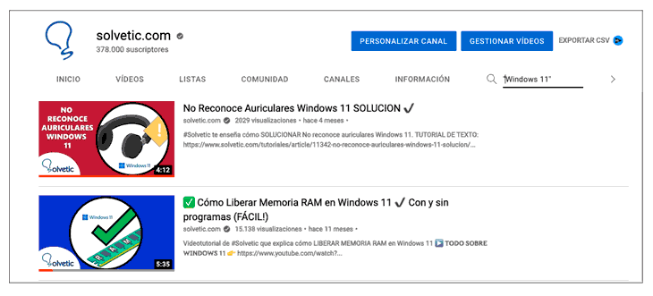 Finalmente verás que los vídeos con esa palabra clave quedan ordenados de este modo.
