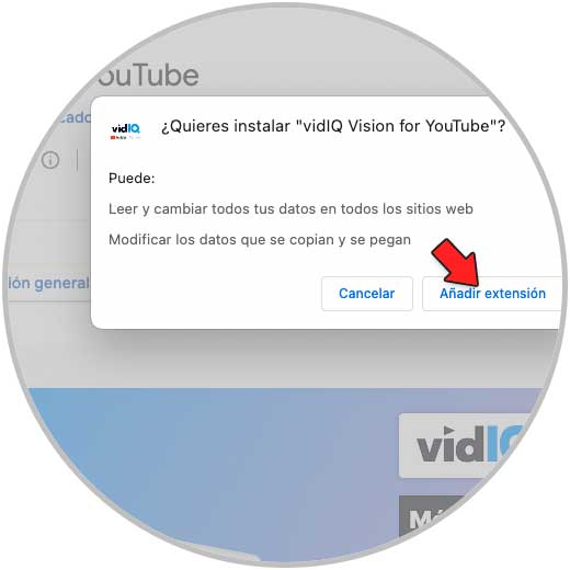 Verás que aparece una ventana emergente para que confirmes que quieres añadir ese plugin en tu navegador. Confirma esto para que empiece a funcionar en YouTube.