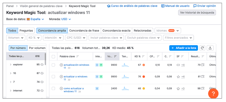 2. Cómo usar Keyword Magic Tool para analizar palabras clave en Semrush