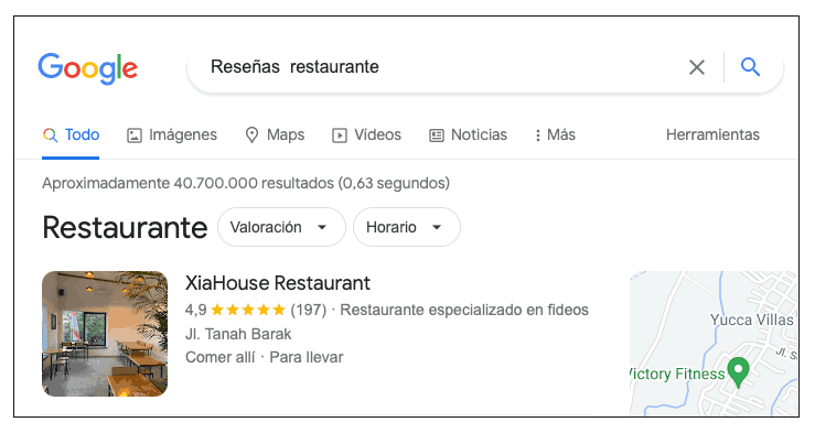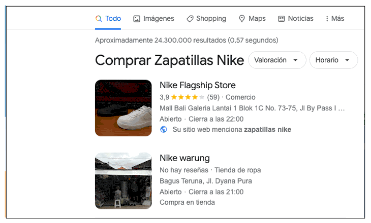 - Reseñas (Símbolo de estrella): Resultados de búsquedas orgánicas marcados con clasificación de estrellas que incluyen el número de reseñas por las cuales se los clasifica.