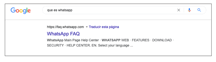 - FAQ (Símbolo de preguntas): Una lista de preguntas relacionadas con una búsqueda determinada que aparece a raíz de un resultado de búsqueda orgánico específico. Cada respuesta aparece al hacer clic sobre la pregunta correspondiente.