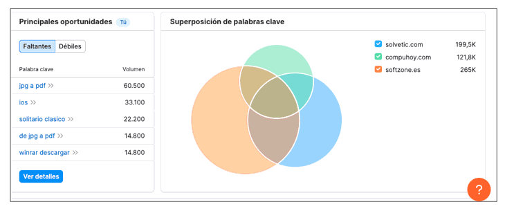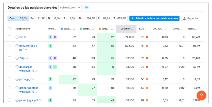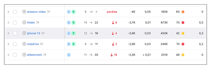 - Perdidas: el dominio ya no está posicionado en el top 100 para estas palabras clave.