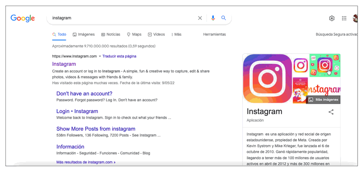 - Imagen (Símbolo de una imagen): Un resultado de búsqueda de imagen con una miniatura que aparece junto con otros resultados de búsquedas orgánicas.