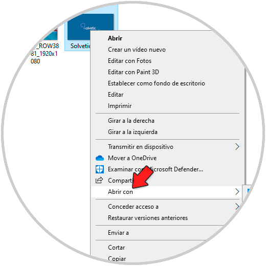 Para el caso de Windows 10, damos clic derecho sobre la imagen deseada y seleccionamos "Abrir con - Elegir otra aplicación":