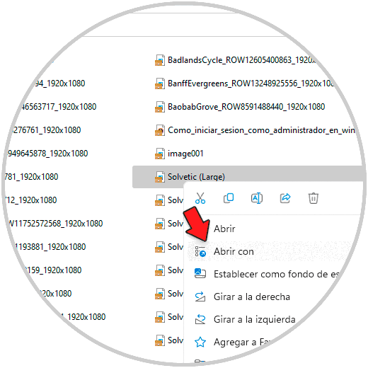 En Windows 11 el proceso es similar, damos clic derecho sobre la imagen deseada y seleccionamos “Abrir con”: