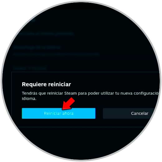 Para aplicar cambios vamos a "Reiniciar ahora"