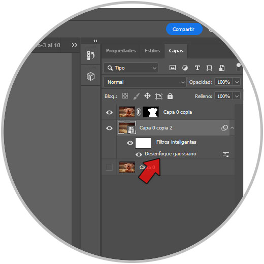 En este caso elegiremos “Desenfoque Gaussiano”. Aplicamos un valor y guardamos cambios para aplicar el desenfoque.