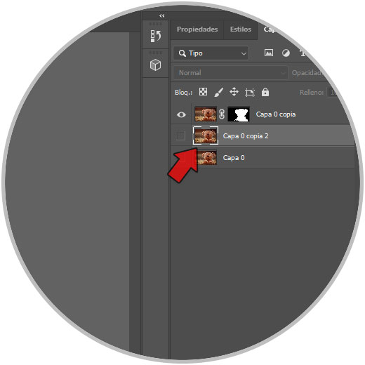 Ocultamos la capa con la selección hecha para poder ver la nueva duplicada y dejamos activa la nueva capa duplicada.