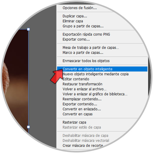 Aplicamos y veremos que se ha rellenado el fondo. Ahora ya podemos trabajar sobre el desenfoque de este fondo. Vamos a convertir primero este fondo en “Objeto inteligente” haciendo clic derecho sobre la capa: