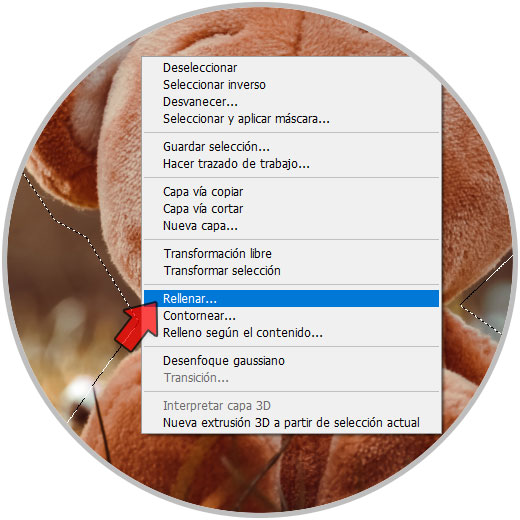 Una vez cerremos la selección veremos que se selecciona nuestro elemento de interés. Ahora hacemos clic derecho sobre la selección y elegimos “Rellenar”