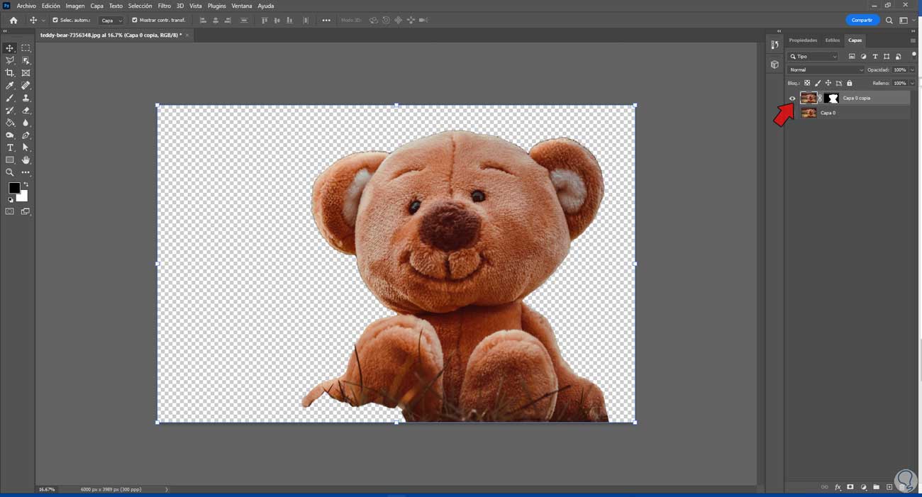 Lo primero que vamos a hacer es aislar el sujeto u objeto del fondo para poderlo trabajar por separado. Para ello vamos a seleccionarlo con alguna de las herramientas de selección Photoshop posibles.