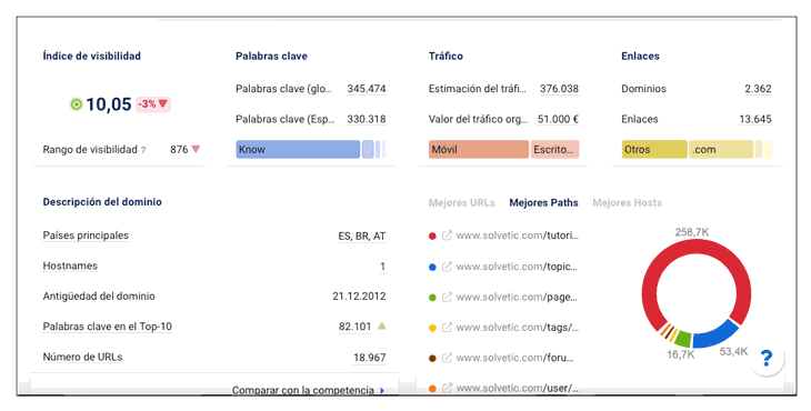 Ahora vemos que Sistrix nos arroja un análisis sobre el dominio que hemos introducido. Veremos que tenemos diferentes datos como: