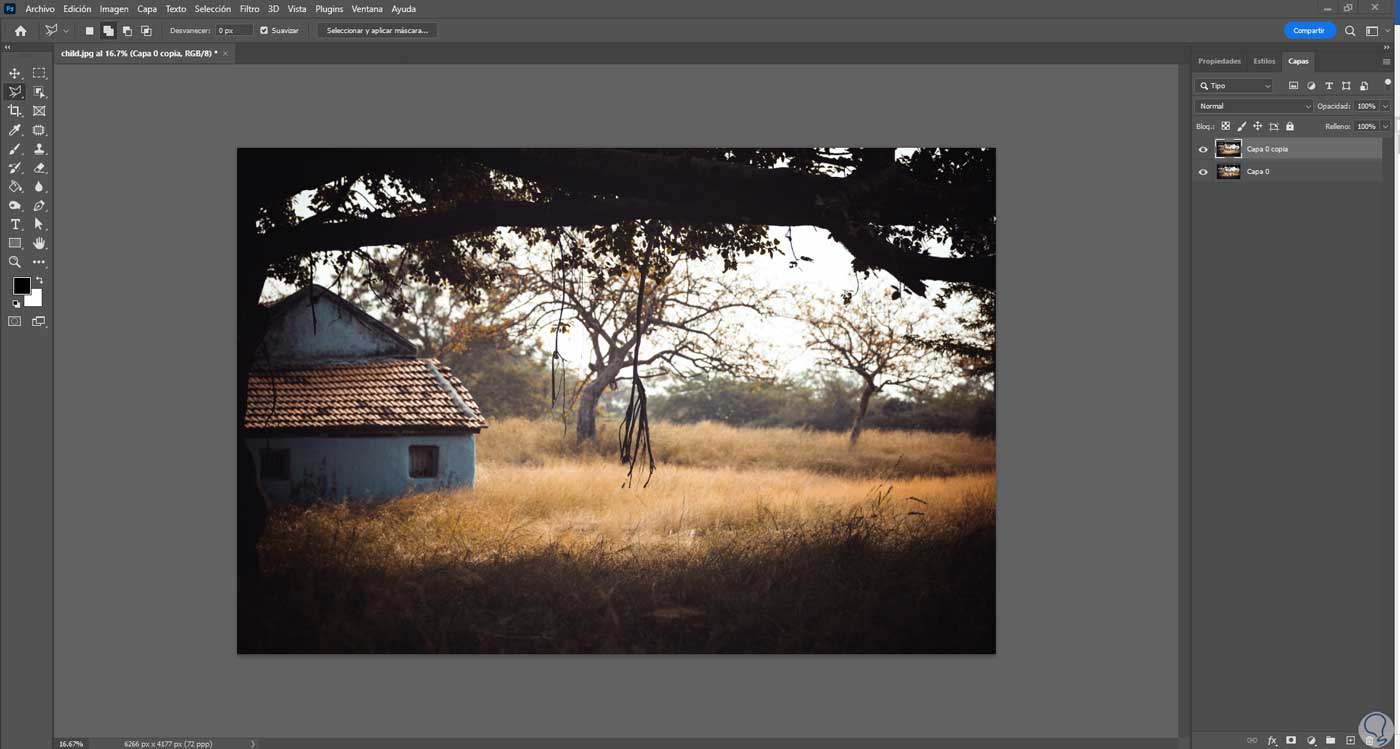 Ahora vamos a duplicar nuestra capa principal con el siguiente atajo de teclado y así luego poder ver el antes y después: