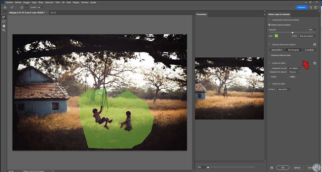 El comando Relleno según el contenido nos va a permitir poder hacer un relleno de una zona determinada en nuestras imágenes reemplazando así los píxeles originales. Con este relleno según el contenido podremos reemplazar una parte de la imagen con contenido que se extrae de otras partes de la misma imagen. Este comando tiene la opción de hacer un relleno de contenido de forma totalmente automática o bien hacer un relleno del contenido configurando de forma personalizada cómo vamos a fusionar y de dónde queremos extraer al contenido para reemplazar.
