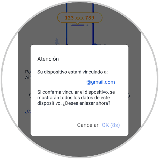 En nuestro móvil, el de la persona responsable, veremos que el móvil se ha vinculado de forma correcta. Pulsamos en OK.
