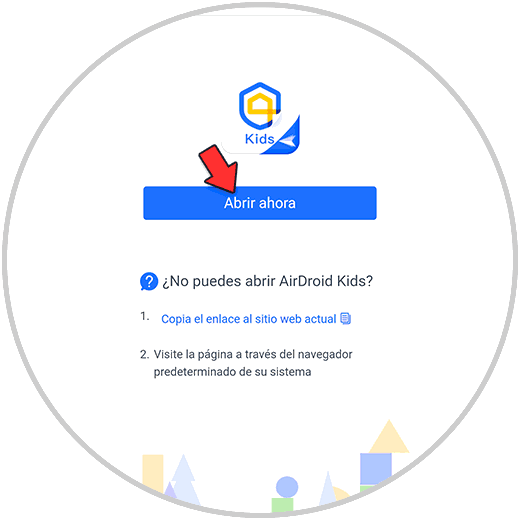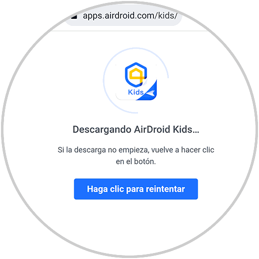 Esta información debe ser usada en el móvil de nuestro hijo o persona a cargo, en dicho móvil abrimos una nueva pestaña e ingresamos la URL indicada, veremos el siguiente mensaje: