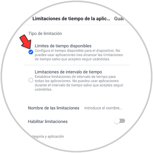Allí es posible un límite completo o por periodos de tiempo, se tendrá acceso a un conjunto de opciones mas completo para limitar el tiempo: