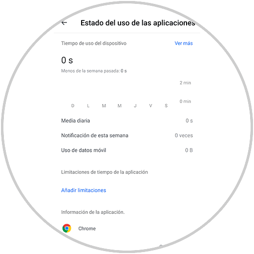 Al acceder a una app es posible tener una vista completa de ella, tiempo de uso, cantidad de notificaciones, uso de datos, etc: