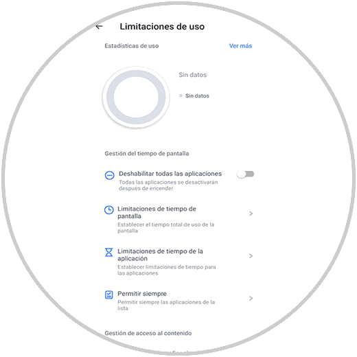 Podemos acceder a la opción “Limites de uso” para ver lo siguiente: