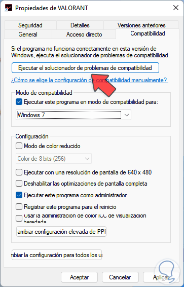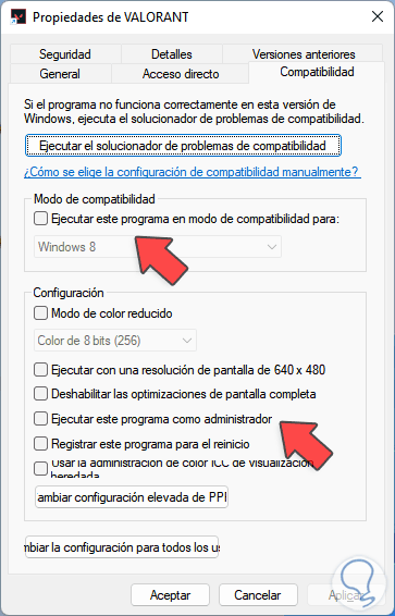 El Modo de compatibilidad permite que una aplicación moderna pueda ser usada en un sistema nuevo donde aún por su configuración no es 100% compatible o algunas de sus funciones no corren como es, para ajustar la compatibilidad en Valorant.