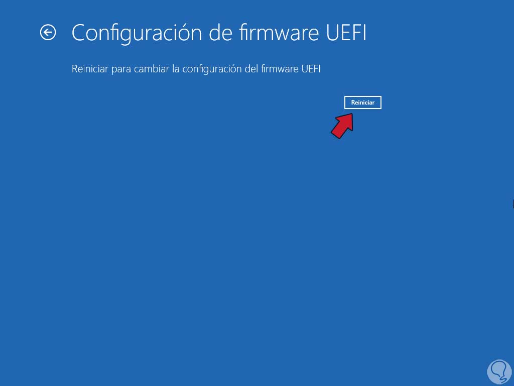 Damos clic en "Reiniciar" para acceder a UEFI: