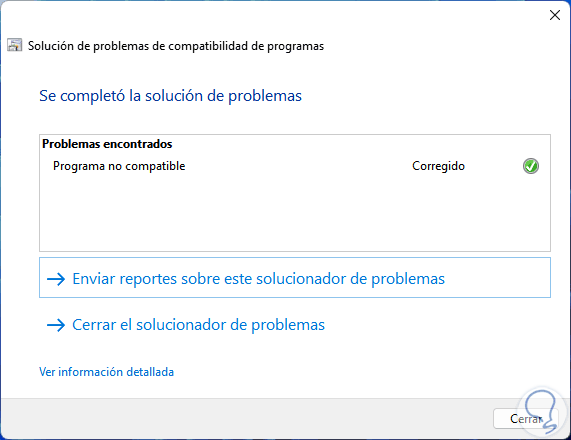 Damos clic en "Ejecutar el solucionador de problemas de compatibilidad" para realizar un análisis detallado: