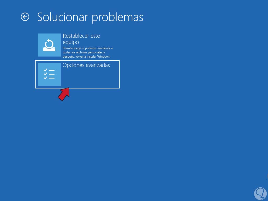 Damos clic en "Reiniciar ahora" y veremos lo siguiente: