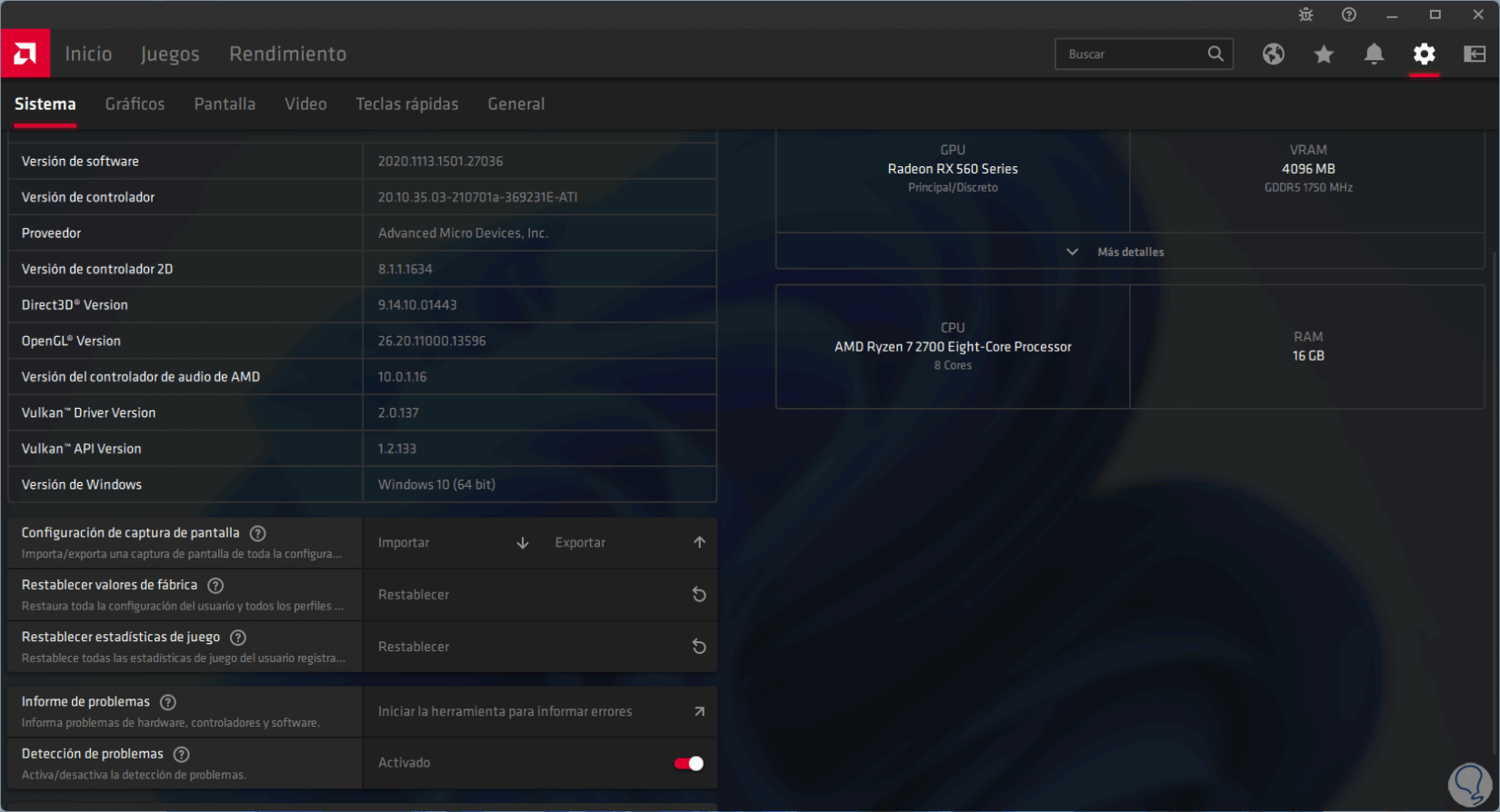 Es posible acceder a la app de la tarjeta gráfica para ver sus propiedades y actualizaciones: