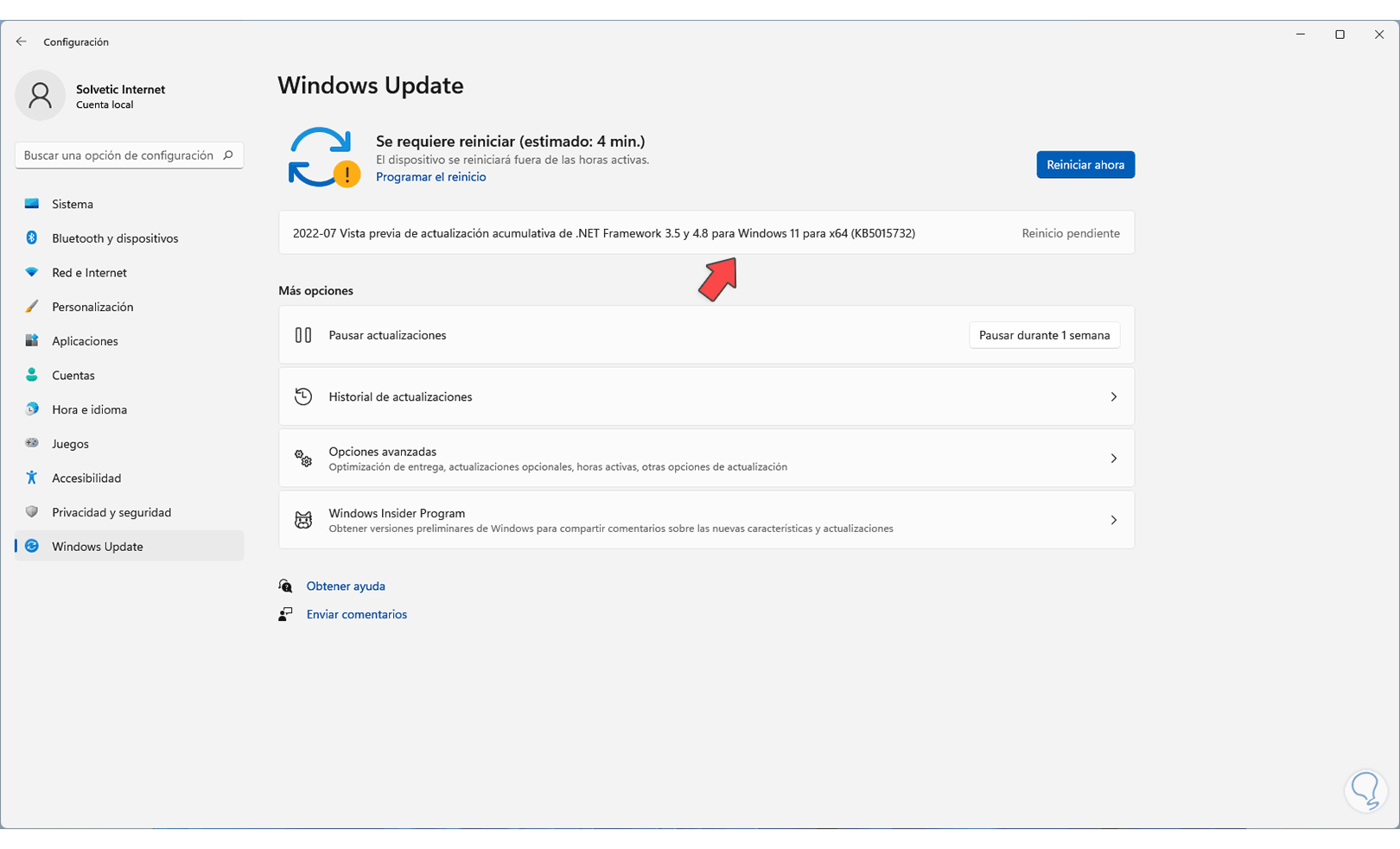 Vamos a "Inicio - Configuración - Windows Update" y comprobamos si existen actualizaciones: