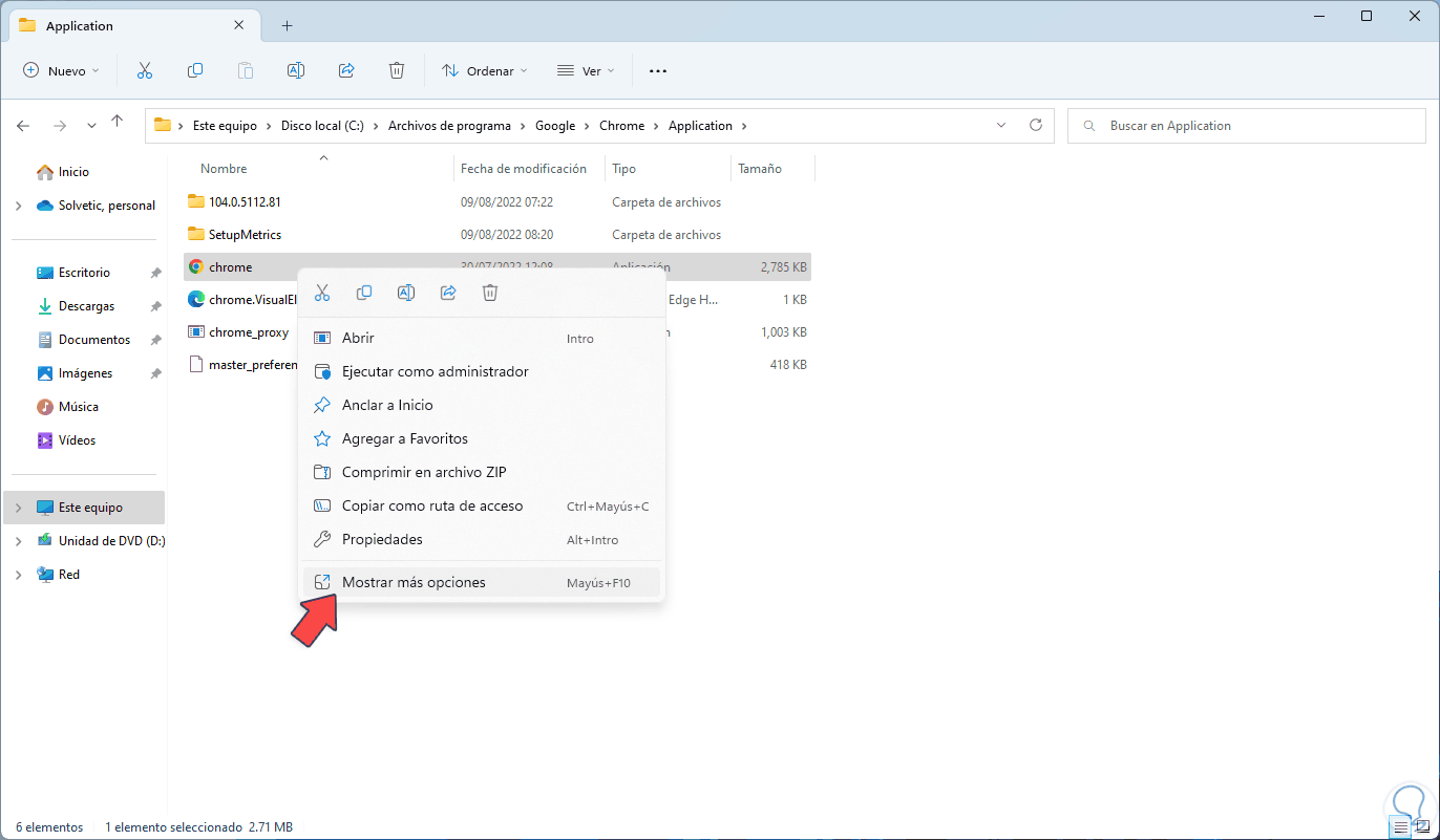 Esta es otra forma alterna de anclar cualquier app en la barra de tareas, para este método vamos a la ruta en el Explorador de archivos donde está el ejecutable, damos clic derecho sobre él y seleccionamos “Mostrar más opciones”: