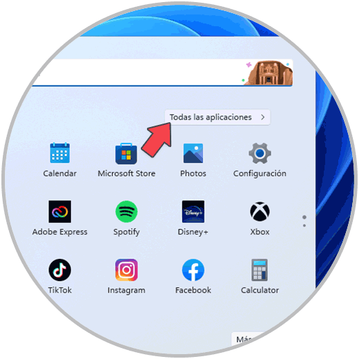 Finalmente esta es otra de las opciones que podemos usar, en este caso pulsamos en el botón de Inicio y luego damos clic en "Todas las aplicaciones":