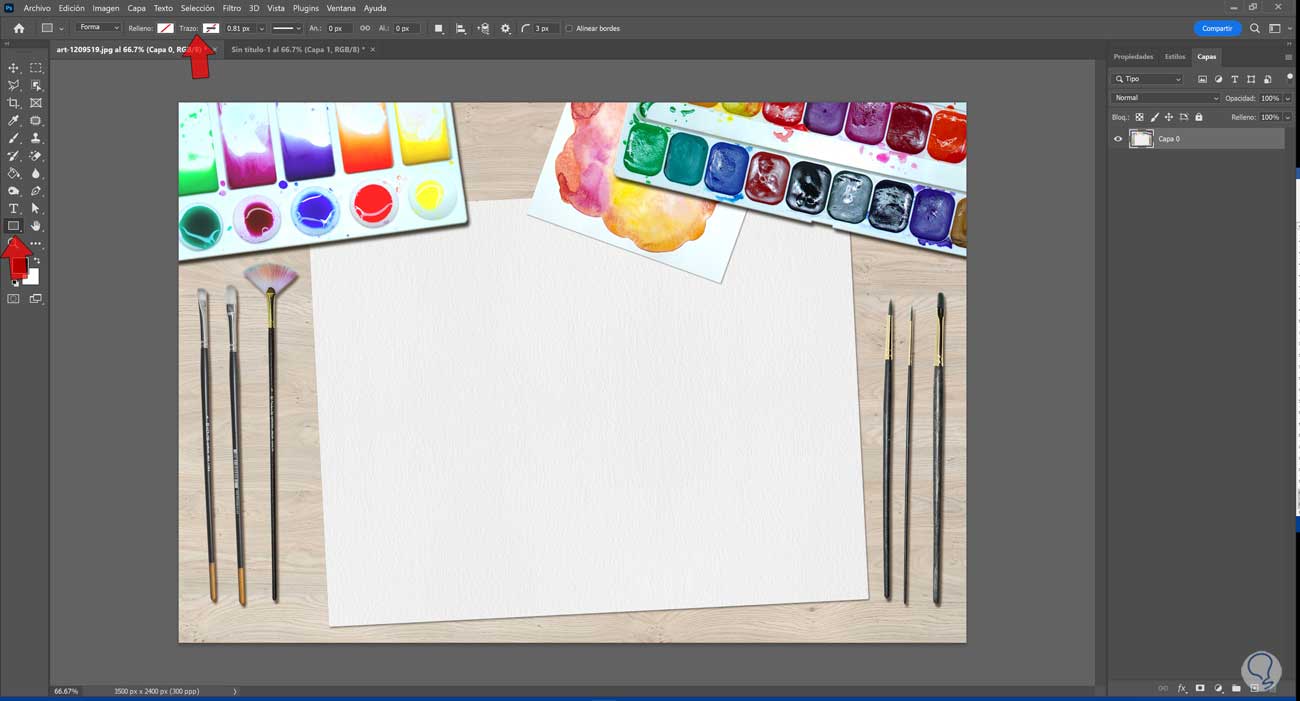 Lo primero que haremos será utilizar la herramienta de forma rectangular. Vamos a quitarle el relleno y el marco en cuanto a color para que no tenga en sus opciones de configuración.