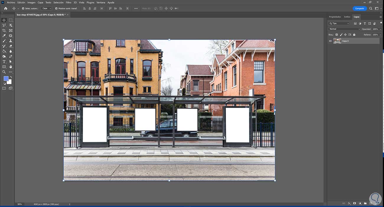 Abrimos nuestra imagen donde queremos crear el mockup. En este caso queremos que este cuadro de lienzo sea editable para poder poner la imagen que queramos así que vamos a ello.