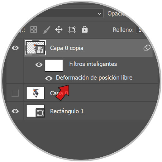A continuación nos ponemos sobre la capa de imagen creada e iremos al menú de “Edición – Deformación de posición libre”.